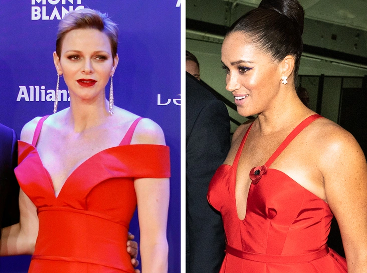 Модные аналитики заметили, что один из самых смелых и дискуссионных нарядов герцогини Сассекской 2021 года очень напоминает образ княгини Монако Шарлен, в котором она появлялась на публике в 2017-м. Сравниваем и разбираем два ярких выхода королевских особ.