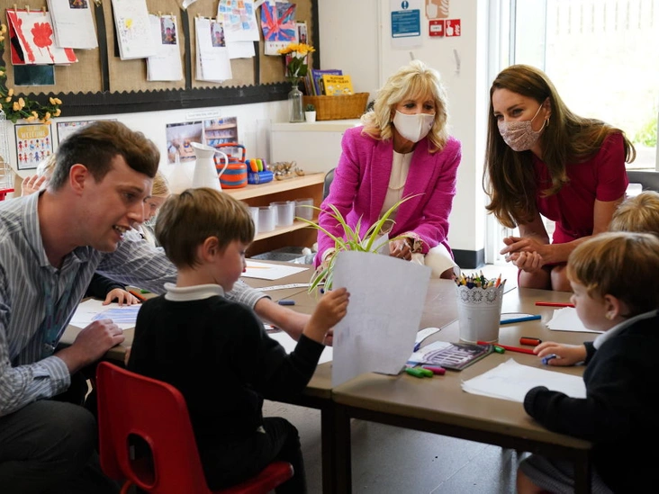 Первая леди и герцогиня Кембриджская встретились, чтобы навестить учеников и преподавателей Академии Коннора Доунса (Connor Downs Academy). Обе женщины давно интересуются темой образования: Байден преподавала сама, а Кэтрин отстаивает идеи, связанные с улучшением дошкольной программы. Герцогиня и первая леди обсудили с учениками младшей школы их уроки и даже успели покормить кроликов из местного мини-зоопарка.