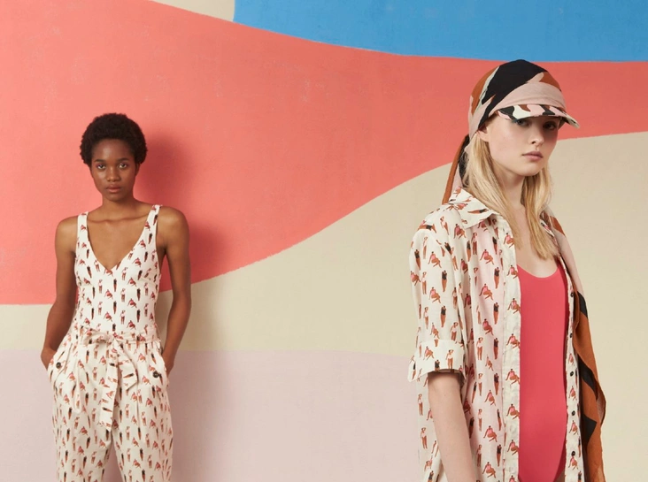 Все внимание в новом сезоне обращено на принты: американская художница разработала красочные изображения, которые украшают капсулу для лета. Кенеша создала три графических мира – Desert Illusion, Girl Power и Forever Explorer. В результате сотрудничества получились броские наряды, которые составят идеальный отпускной гардероб: яркие слитные купальники, футболки и топы, идеальные для жары. Коллекция также включила в себя парку из технологичной ткани, свободные длинные платья из хлопкового муслина с воланом по низу, укороченный комбинезон из эластичного хлопкового атласа, расклешенные юбки и брюки с завышенной талией. Правда, многие вещи можно носить, не дожидаясь жары – например, красочный шелковый платок легко интегрировать в повседневные образы даже во время холодов.