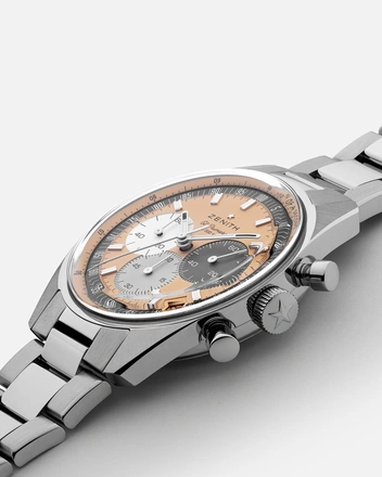 При создании серии Zenith Chronomaster Original дизайнеры вдохновлялись эстетикой 1960-х годов. Плавные линии корпуса, сдержанные оттенки лососевого и серебряного с точностью передают дух той эпохи. Но «начинка» часов отвечает всем требованиям современного мира. В основе новой модели лежит механизм El Primero 3600, который измеряет время с точностью 1/10 секунды и имеет запас хода до 60 часов. Его главным преимуществом считается наличие кремниевого анкера. Он стал лучшей альтернативой четвертому колесу, которое до этого запускало механизм хронографа. Теперь новая версия El Primero хорошо защищена от повреждений и без помех работает в любых условиях.