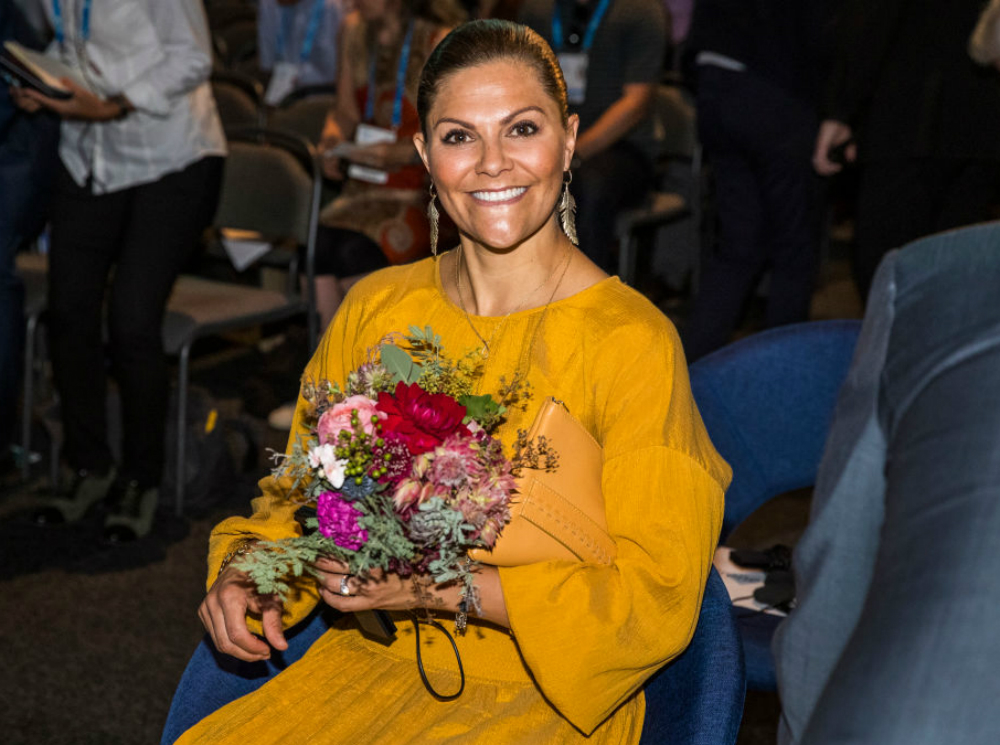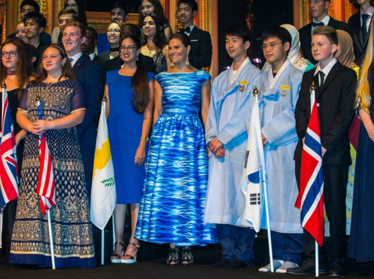 Днем ранее на церемонии вручения наград Junior Water Prize Виктория блистала в платье с символичным голубым принтом в виде волн. Стоит отметить, что кронпринцесса выступает королевским патроном Junior Water Prize уже несколько лет.