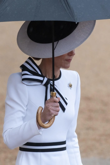 На празднике принцесса Уэльская была одета в белое платье от Дженни Пэкхэм, украшенное черно-белым бантом на горловине, черными полосками на поясе и такого же цвета окантовкой на шее. Свой образ она дополнила белыми каблуками, брошью в честь Ирландского полка, широкополой шляпой Philip Treacy и жемчужными серьгами Cassandra Goad.