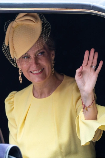 Герцогиня Эдинбургская была замечена на дне рождении в очаровательном желтом платье. В вопросе аксессуаров она остановила свой выбор на асимметричной шляпке, украшенной изящной сеткой, и утонченных серьгах, которые добавили удачному, поистине королевскому образу еще больше изысканности. Выбор герцогиней яркого, жизнерадостного цвета и минималистичного дизайна платья подчеркнул ее тонкий вкус и поразительное умение блистать перед публикой во время общего праздника, не перетягивая показательно одеяло на себя.