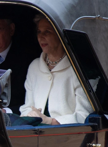 К сожалению, меньше остальных в кадр попадала герцогиня Глостерская, держась в стороне со своим супругом Ричардом. Но не заметить самый светлый и чистый образ на минувшем празднике было просто невозможно. Ее белый наряд на одну пуговицу в сочетании с бежевыми перчатками, светлым головным убором на серебряных от возраста волосах и жемчужными серьгами произвел на общественность неизгладимое впечатление, явив скромную герцогиню Биргитту в образе невинного ангела.
