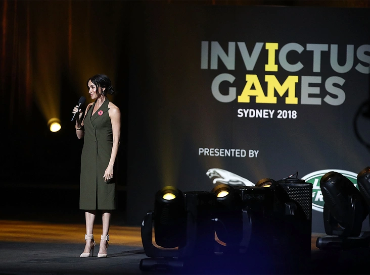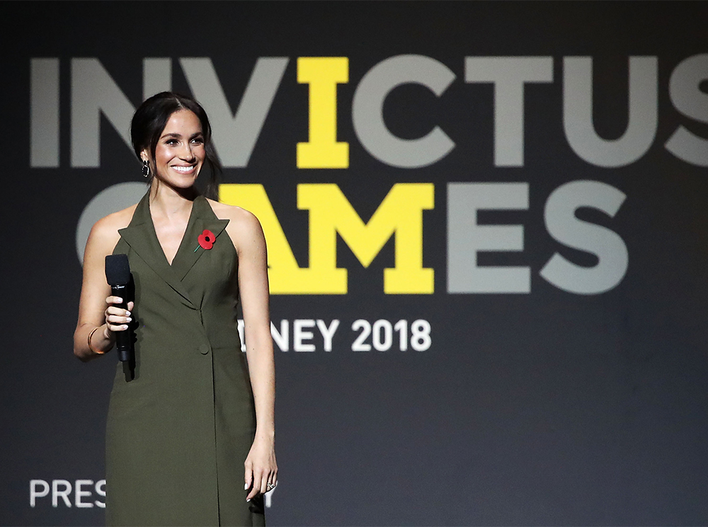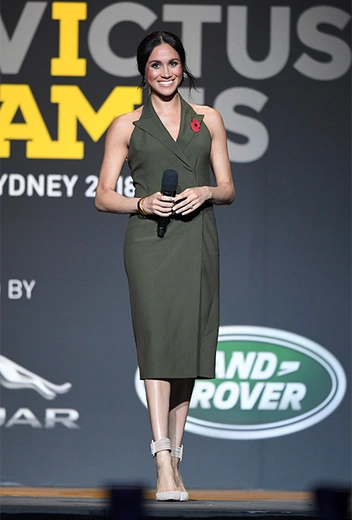 Завершающим мероприятием субботы в Сиднее стала красивая церемония закрытия Игр Непокоренных. Меган прибыла на нее в оливковом платье Antonio Berardi, фасон которого ей очень шел (как, впрочем, и любой наряд с американской проймой).