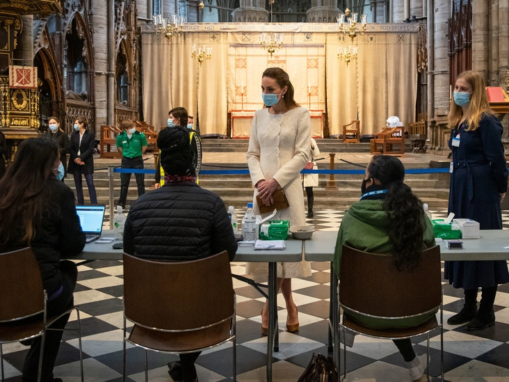 Как сообщается в пресс-релизе, центр может «еженедельно делать до двух тысяч жизненно важных инъекций местным жителям Вестминстера». Речь об одном из центральных районов Лондона. Согласно тому же пресс-релизу, во время визита во вторник герцог и герцогиня Кембриджские поговорили как с представителями сферы здравоохранения, так и с людьми, которым делают прививки. Также чета пообщалась с деканом аббатства, достопочтенным доктором Дэвидом Хойлом и его ближайшим соратником Полом Бауманном. Все, кто находился в Вестминстерском аббатстве, были в медицинских масках и соблюдали социальную дистанцию.
