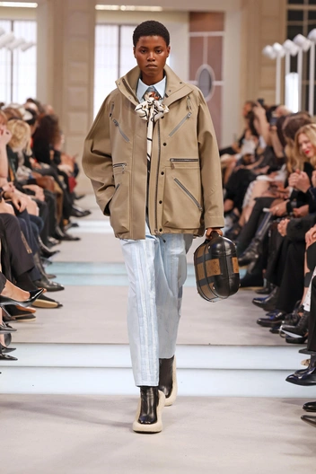 Что же касается самой коллекции, то вдохновением для прошедшего шоу стала атмосфера путешествий на поездах. Николя Гескьер использовал образ железнодорожных станций и перенес его на подиум: модели, словно туристы и пассажиры междугородних рейсов шагали по подиуму в тренчах, объемных свитерах и кожаных куртках. Всего было представлено 60 аутфитов.
