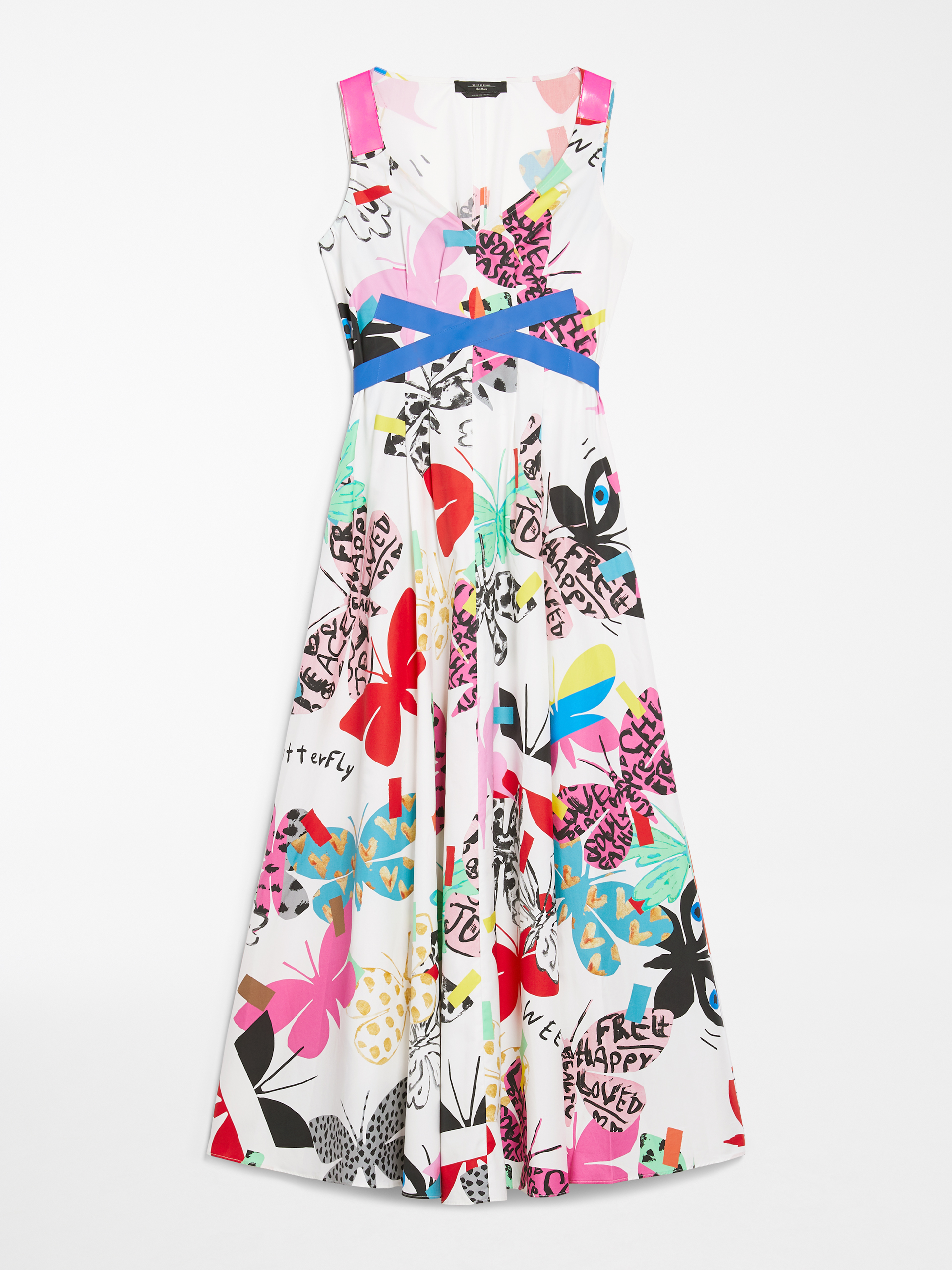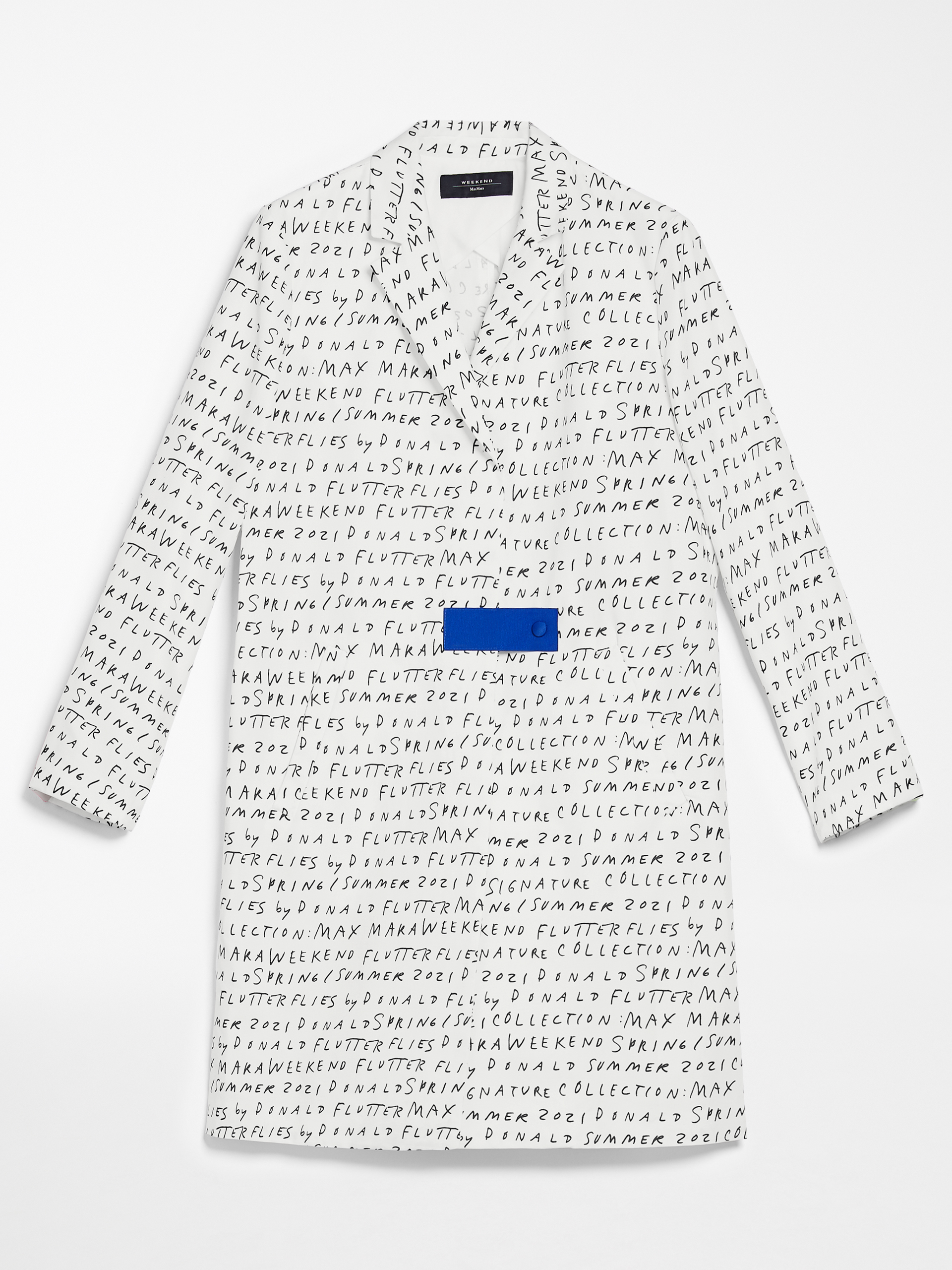 Эта коллекция, полная ярких красок и бойких набивных рисунков, добавляет всплеск энергии весенне-летнему сезону. «Получилось очень весело и непринужденно. Ироничный шик, как я это называю», — говорит Робертсон. Ведущее место занимают принты с узнаваемыми символами, приемами и идеями Робертсона. Подборка вещей с чистыми четкими линиями поднимает настроение благодаря ярким рисункам, на которых воплотились как «фирменная» стилистика Робертсона, так и бабочка — давний символ Weekend Max Mara. Легкие и изящные бабочки порхают яркими принтами или вырезаны вручную из цветной клейкой ленты — слегка небрежно, так, как это мог бы сделать ребенок на уроке труда.