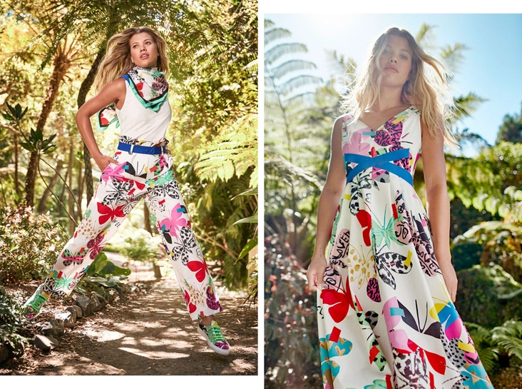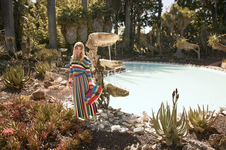 Дух этой коллекции воплотила американская модель София Ричи, а запечатлел на снимках фотограф Дьюи Никс, известный самобытностью и точностью своего взгляда на мир и прекрасным знанием искусства, которые много лет влияли на формирование популярной культуры. Все это происходит в тропическом саду, а основное настроение — сочетание поп-искусства и фантазии.