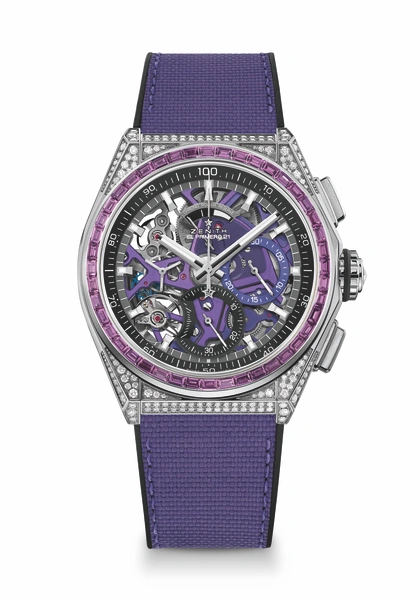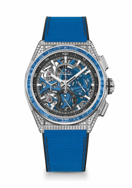 В основе этой яркой эксклюзивной коллекции лежит El Primero 21 — революционный калибр хронографа Zenith с точностью 1/100 секунды, который работает с поразительной скоростью 50 Гц (360 000 полуколебаний в час). Самый быстрый хронограф в производстве и единственный, который точно и разборчиво измеряет и отображает измерения времени, El Primero 21 стал новой важной ступенью для бренда.