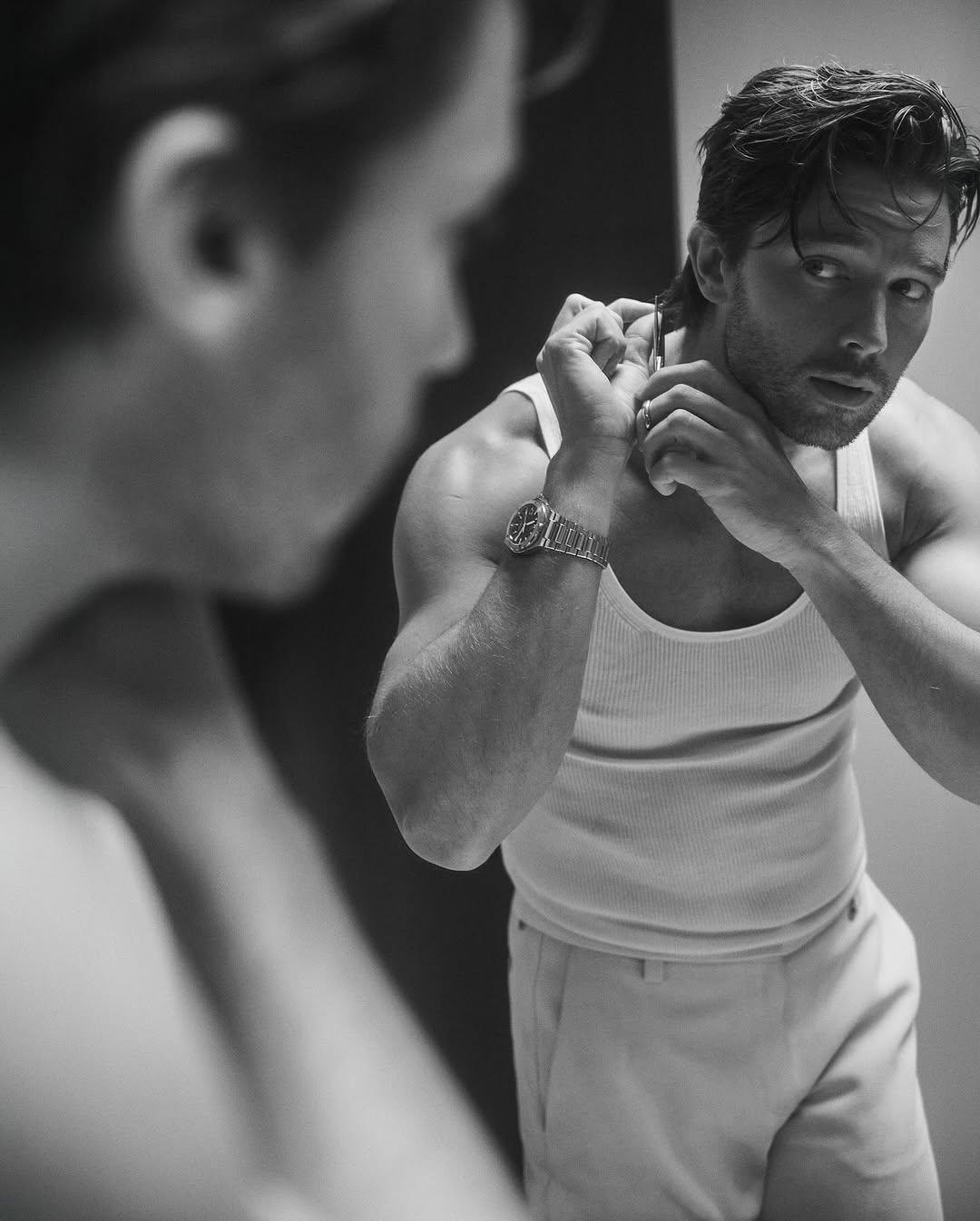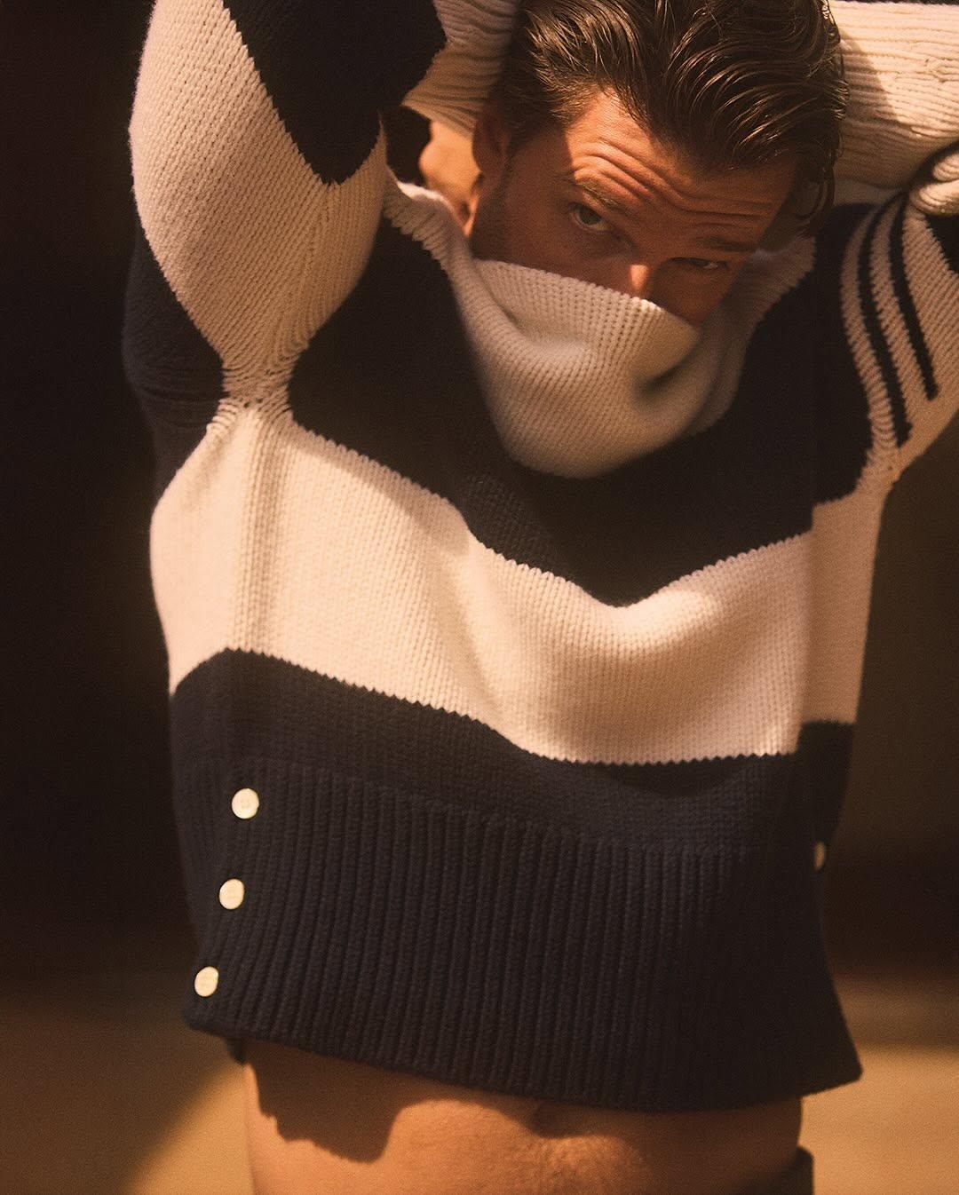 В прилагающемся к снимкам интервью, актер рассказал о своей роли в третьем сезоне «Белого лотоса» и о том, как строит свою карьеру в Голливуде. Его герой, Саксон Рэтлифф, — избалованный сын богатой, но нездоровой семьи.