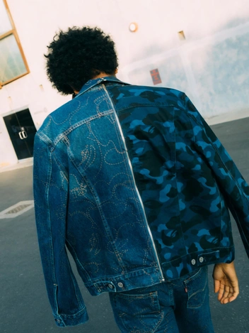 Японский бренд A Bathing Ape и американская марка Levi’s объединили свои усилия и представили новую совместную коллекцию, центральным элементом которой стала куртка из денима Levi’s Type III Split Trucker.