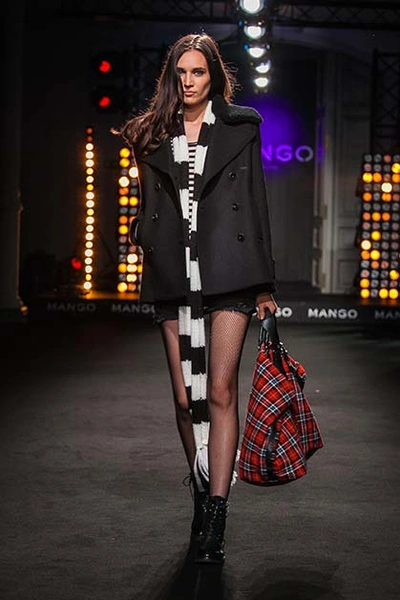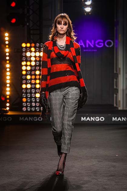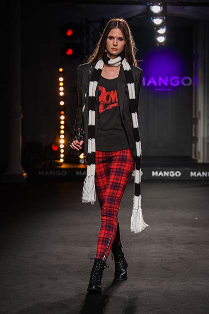 Рваные джинсы, кожаные байкерские куртки и жилетки, пиджак в пайетках, бархатный костюм-двойка, растянутые свитера и длиннющие шарфы – таким видят гардероб современной поклонницы панк-рока создатели коллекции MANGO осень-зима 2014. Коллекцию назвали Rock It Up, что можно расценить как призыв к бунту. На самом деле MANGO призывает к цивилизованной форме самовыражения – например, к добавлению в повседневные образы панковского шика. Для девушек, любящих панк, но не видящих себя в эпатажных украшениях и кожаных юбках, предусмотрены несколько выходов моделей в костюмах preppy. Склонность к культурному мятежу этих «скромниц» в белых рубашках выдавали колготки в сетку и массивные ботинки на высокой платформе.
