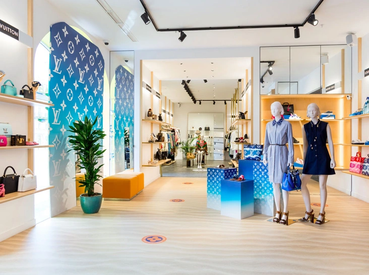 Витрины нового пространства встречают гостей гипнотическим танцем подводного мира. В магазине будут представлены коллекции женской обуви, а также избранные кожаные изделия. По случаю открытия Louis Vuitton представит ограниченную серию обуви из весенне-летней коллекции 2020, созданную директором женских линий Дома Louis Vuitton Николя Жескьером.