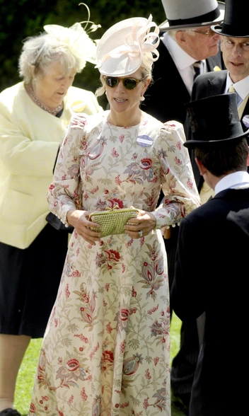 Перед этим выходом на скачки Зара Тиндолл поработала со стилистом Энни Миалл, которая подобрала королевской особе потрясающий образ. Дочь принцессы Анны надела нежно-розовое платье от Anna Mason с декором, акцентом на талии и объемными рукавами. Образ завершил гламурный клатч со стразами Anya Hindmarch и замшевые туфли пудрового оттенка Emmy London.