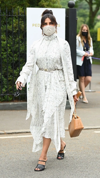 Среди звезд шоу-бизнеса на турнире отметились исполнительница главной роли в популярном сериале «Бриджертоны» Фиби Дайневор в минималистичном оливковом платье от Self-Portrait, Дэвид Бекхэм в белоснежном блейзере от Ralph Lauren, Сиенна Миллер в легком сине-белом комбинезоне в продольную полоску, Приянка Чопра-Джонас в летящем платье в мелкий цветочный принт и др.