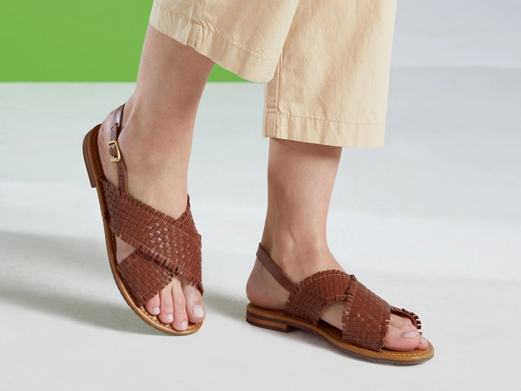 Балетки, сандалии и босоножки с плетеным верхом в природной палитре (теплые коричневые оттенки, глубокий синий) идеально дополнят платья, сарафаны и юбки из хлопка и льна, и также гармонично впишутся в офисный дресс-код.