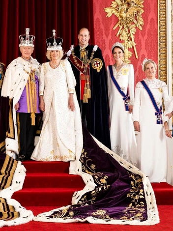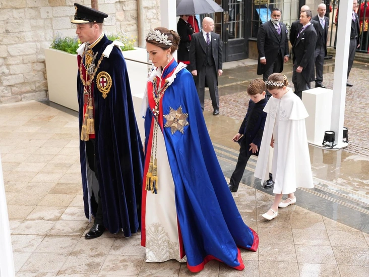 И главная тайна, которую так и не смогли раскрыть королевские поклонники, кроется в наряде принцессы Уэльской. Когда Кэтрин прибыла в Вестминстерское аббатство на коронацию короля Карла и королевы Камиллы, ее платье Alexander McQueen из шелкового крепа цвета слоновой кости было в значительной степени закрыто фиолетовой накидкой — мантией Королевского Викторианского ордена. Принцесса была в мантии и во время появления Виндзоров на балконе Букингемского дворца. Однако Уэльская отказалась от нее ради официальной коронационной фотографии, которая была сделана во дворце позже в тот же день.