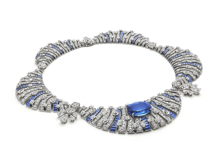 Обнимающее шею подобно нежному тонкому воротнику, колье Sapphire Petal объединяет смелость и грация. Эргономичная конструкция из пяти лепестков, украшенная бриллиантами и кабошонами сапфиров, спроектирована и изготовлена мастерами Bvlgari таким образом, чтобы гарантировать комфортную посадку, исключительную подвижность и подлинную пластичность. Центральный васильковый сапфир весом 35,45 карата — дань уважения одному из любимых драгоценных камней Николы Булгари, чей живой цвет напоминает лазурную мантию Девы Марии на картинах художника эпохи Возрождения Антонелло да Мессина.