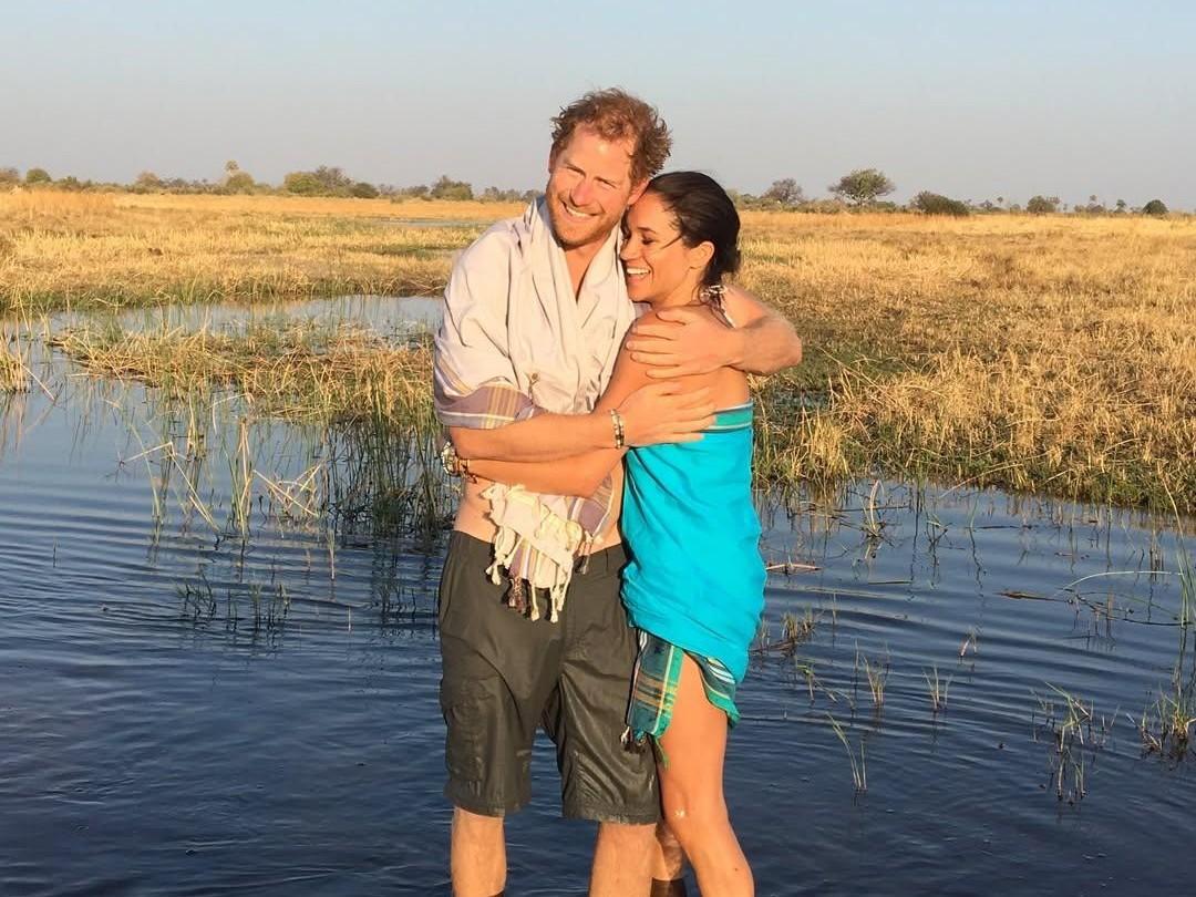 А вот второй снимок датируется как раз 2016 годом и был сделан во время их поездки в Ботсвану. Они обнимались, стоя по колено в воде, посреди саванны. К слову, это же фото поклонники пары уже видели ранее — оно фигурировало в документальном сериале Netflix «Гарри и Меган».