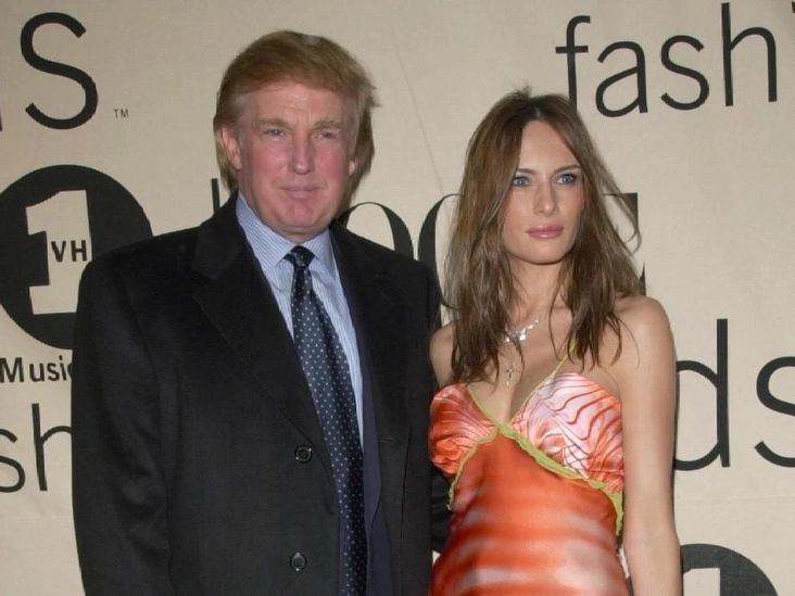 Перед роскошной свадьбой пары в Палм-Бич в январе 2005 года, Мелания появилась на обложке Vogue, одетая в свадебное платье, которое дом Dior сшил для нее на заказ. Известно, что ее наряд был создан из 90 метров белого атласа, вышитого 1500 хрустальными стразами и жемчугом. Роскошное платье весило колоссальные 28 килограммов. К слову, выбирать фасон Мелании помогли главный редактор американского Vogue Анна Винтур и ее правая рука Андре Леон Тэлли.