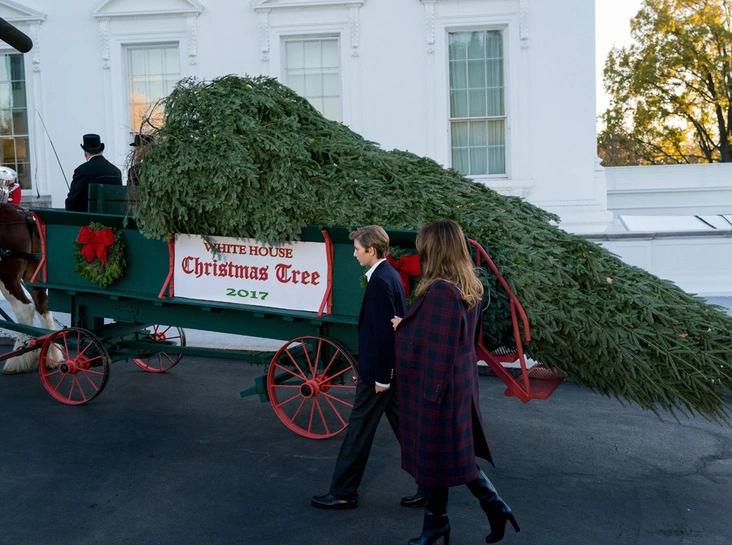 Младший сын президента США, 11-летний Бэррон Трамп, с момента переезда в Вашингтон практически не появлялся на публике. Но вчера был особенный день. В Белый дом, наконец, прибыла рождественская елка. И ни наследник Трампов, ни Первая леди не смогли оставить событие без внимания.