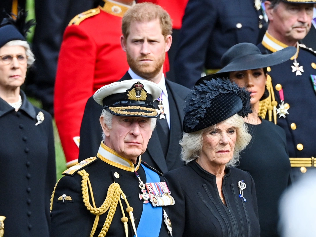 Снимок был сделан в Букингемском дворце незадолго до того, как новоиспеченные король и королева-консорт устроили в нем прием для мировых лидеров. Это случилось накануне похорон Елизаветы II. Сассекские не присутствовали на этом приеме, несмотря на то, что в тот момент находились в Великобритании. Считается, что Гарри и Меган не звали во дворец, поскольку с момента их переезда в США они больше не считаются действующими членами королевской семьи. Также известно, что у пары непростые отношения как с королем, так и с принцем Уэльским.