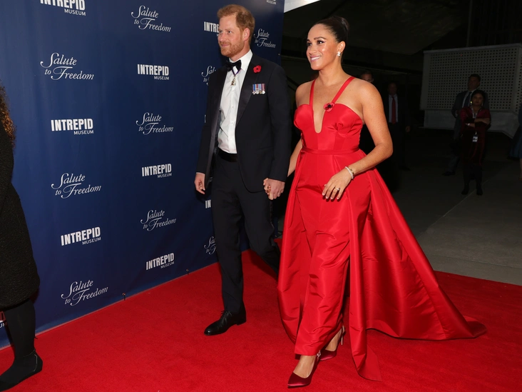 Это первый выход пары с тех пор, как они прошлись по красной дорожке гала-вечера Salute of Freedom Gala в ноябре. То появление Сассекских тоже наделало много шума. В частности, критике подвергся наряд герцогини.