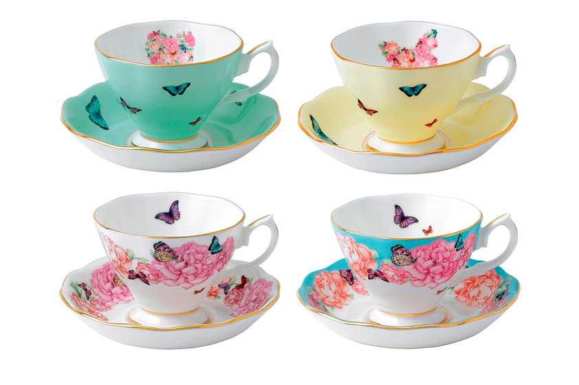 Теперь австралийская супермодель совместно с компанией Royal Albert выпустила коллекцию чайного сервиза. В комплект входят чашки и блюдца, баночка для хранения чая и трехъярусная подставка для пирожных, выполненные из твердого английского фарфора. Сервиз украшен изображением бабочек и любимых цветов Миранды – пионов.