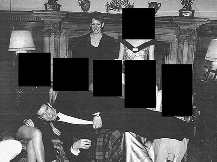 Эндрю Маунтбеттен-Виндзор и Гислейн Максвелл с девушками, лица которых скрыты при редактировании файлов