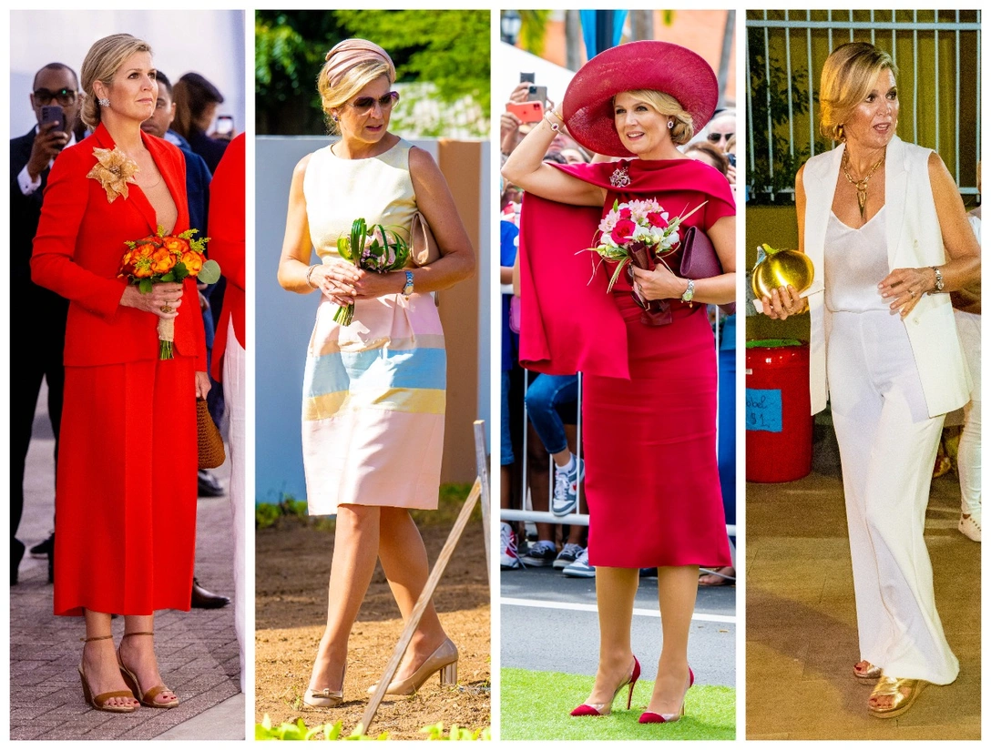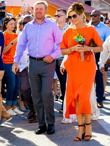 Королева Максима предприняла тур на Карибы со своей семьей, где она появлялась в красочных нарядах, в полной мере отражающих ее фирменный стиль. Платья Ее Величества были выдержаны согласно требованиям протокола, дополнены обязательными головными уборами и идеально подходящими королевскими украшениями. Кроме того, королева Нидерландов не забыла и о главном цвете монаршей династии, тем более что визит посвящен представлению принцессы Оранской карибской части государства.