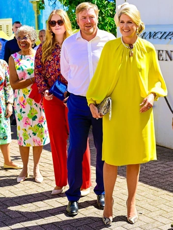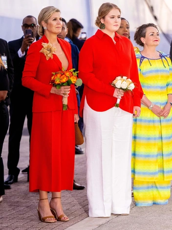 На 5-й день визита на голландские Карибские острова король Виллем-Александр и королева Максима с принцессой Амалией, принцессой Оранской поучаствовали в приветственной церемонии. В этот момент мать и дочь были в красно-оранжевом, возможно, символизировавшем дом Оранских.