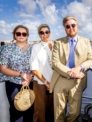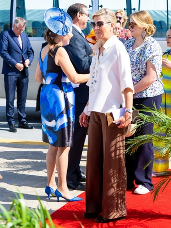 Также трио совершило морское путешествие из Арубы в Кюросао на корабле армейской обороны Zr.Ms. Holland. Обе королевских леди выбрали брюки и блузы по этому поводу.