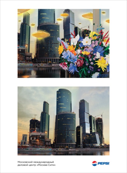 В честь дня рождения столицы фотограф Петр Ловыгин и знаменитый дуэт художников Виноградова и Дубосарского объединили творческие усилия и создали серию работ, необычно преобразив привычные достопримечательности Москвы. Всего в нестандартном ракурсе перед посетителями выставки «Pepsi Pop Art Moscow» предстанут 11 узнаваемых московских пейзажей. Выставка «Pepsi Pop Art Moscow» продлится месяц: посмотреть на Москву глазами знаменитых художников можно на дизайн-заводе FLACON с 6 сентября по 6 октября.