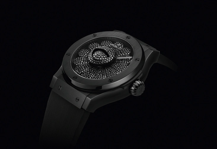 Лепестки украшены 456 бриллиантами, а циферблат имеет 107 драгоценных камней. Часовые мастера использовали культовый калибр Unico в корпусе с дизайном Classic Fusion, имеющий механизм с запасом хода в 72 часа. Лимитированная модель Classic Fusion Takashi Murakami All Black, выпущенная ограниченным тиражом в 200 моделей — первая совместная работа Hublot и японского художника, которая станет идеальным подарком для настоящих коллекционеров.