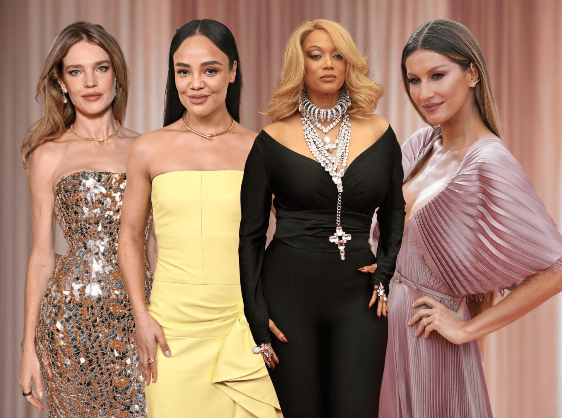 Следом за ними на фотоколл поспешила и Жизель Бюндхен. Она предпочла тотал-блэк образ Chanel из коллекции весна-лето 2025 — длинное черное платье из сетки и пайеток. Правда, на подиуме у него были закрытые рукава, а в стилизации модели они остались полупрозрачными. В дополнение к своему наряду Жизель выбрала бриллиантовый обвес: крупное кольцо на указательном пальце, ожерелье и утонченные серьги.