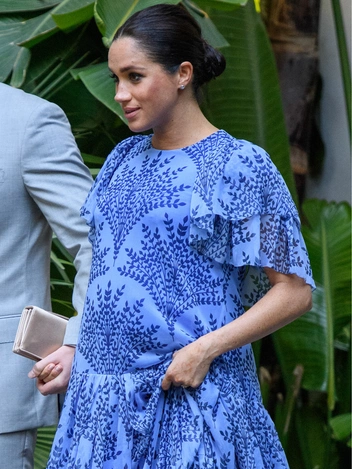 Ранее Меган не появлялась в кремовом длинном платье без рукавов на публике, однако известно, что этот экземпляр был изготовлен для герцогини американским лейблом с венесуэльскими корнями, когда она была беременна Арчи. Тогда супруга принца Гарри предстала перед общественностью в ярком лазурном платье Carolina Herrera. Кто-то решил, что выбором платья герцогиня хотела отдать дань уважения американскому модному дому, другие же заключили, что это связующее звено с первой беременностью Меган.