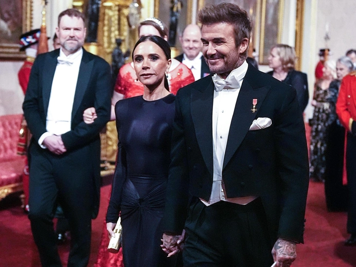 После прибытия на мероприятие звездная пара попала в объективы фотоаппаратов. На кадрах видно, что Виктория сначала нервно идет по дворцу, а когда замечает съемку, моментально меняется в лице и пытается принять расслабленный вид. Немного оторопев от направленной на нее камеры, дизайнер на секунду остановилась, но смогла быстро собраться, взяла мужа за руку и гордо проследовала дальше.