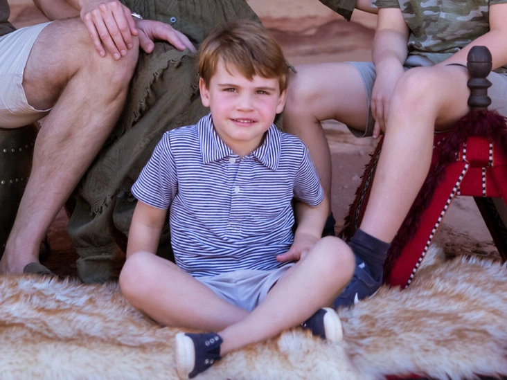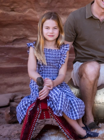 В этом году снимок пары и их троих детей, принца Джорджа, принцессы Шарлотты и принца Луи, был сделан за тысячи миль от дома — Кембриджские выбрали семейную фотографию, сделанную во время их совместной поездки в Иорданию. На кадре принц Уильям, одетый в легкие шорты и рубашку-поло цвета хаки, сидит на золотой скамейке рядом со своей супругой в темно-зеленое летнее платье с длинными рукавами. Рядом с ними расположились принц Джордж и принцесса Шарлотта, а принц Луи сидит спереди на ковре, напоминающем шкуру (читайте также: Принц Луи Кембриджский: третий год в фотографиях).