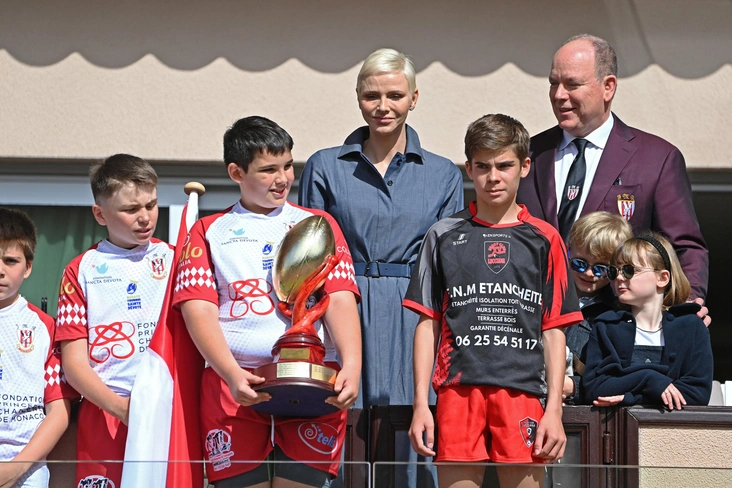 Шарлен вместе с князем Альбером отправилась на турнир по регби Сент-Девот, соведущей которого была сама княгиня. К королевской паре также присоединились их семилетние близнецы принцесса Габриэлла и принц Жак.