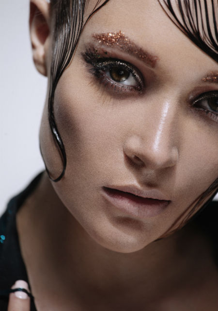 Что касается глаз, стрелки разных цветов остаются актуальными. Тем, кому они не нравятся, подойдёт второй тренд - всевозможные глитеры и тени с шиммером.