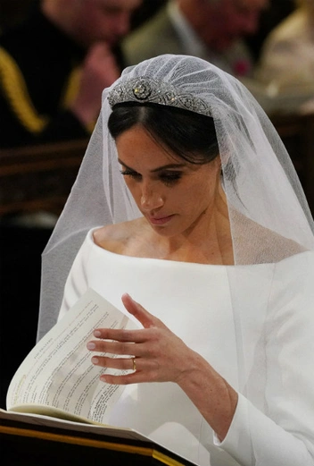 Обычно невесты из аристократических семей идут к алтарю в фамильных тиарах своих семей, как это было с леди Дианой, выходившей замуж в тиаре Спенсеров. Однако в случае с Меган этот сценарий не подходил, и СМИ долго гадали, в каком украшении предстанет невеста. В 2018 году, когда влюбленные поженились, инсайдер сообщил популярной британской газете The Sun следуюшие подробности: «Меган всем сердцем прониклась к тиару с изумрудами, и принц Гарри был очень удручен, когда услышал, что она не сможет ее надеть». Впрочем, причиной отказа был не пустой каприз: поскольку происхождение тиары не было стопроцентно подтверждено, у специалистов были предположения о том, что она может быть связана с Россией, и Королева сочла, что лучше украшению не появляться на свадьбе. Вместо него была выбрана алмазная тиара-бандо королевы Марии Текской от Garrard, датированная 1932 годом.