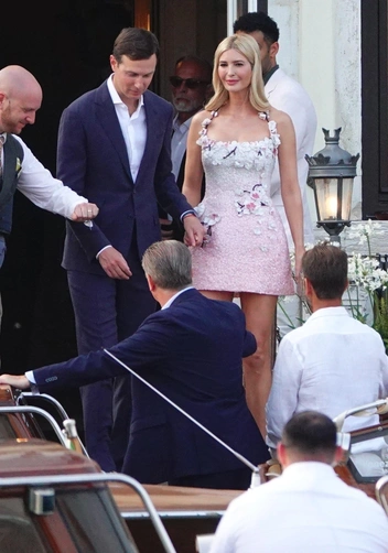 Еще одно громкое появление — беременная Карли Клосс с мужем Джошуа Кушнером, деверем Иванки Трамп. Модель надела нежно-розовое скульптурное платье в пол, которое подчеркнуло заметно округлившийся живот. Звезда сейчас находится на последних месяцах срока, поэтому многие поклонники сомневались, сможет ли она посетить «свадьбу века». Однако для Карли, привыкшей работать во время предыдущих двух беременностей, даже выход на столь масштабном торжестве — совсем не проблема.