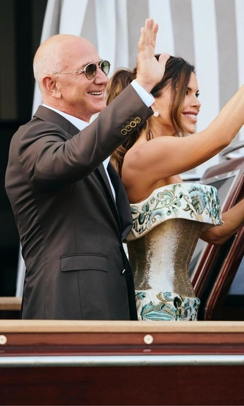 26 июня в Венеции жениха и невесту заметили папарацци. Пара собиралась встретиться с гостями в монастыре Мадонна-дель-Орто. Лорен появилась на фотографиях в образе Schiaparelli из коллекции 2025 года. Золотое платье с вышивкой в виде цветов дополнил тугой корсет, имитирующий драгоценный металл. К нему Санчес также добавила круглые бриллиантовые серьги, помолвочное кольцо с 30-каратным камнем и остроносые туфли на каблуке.
