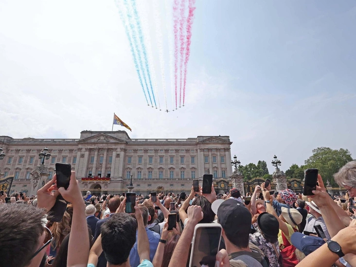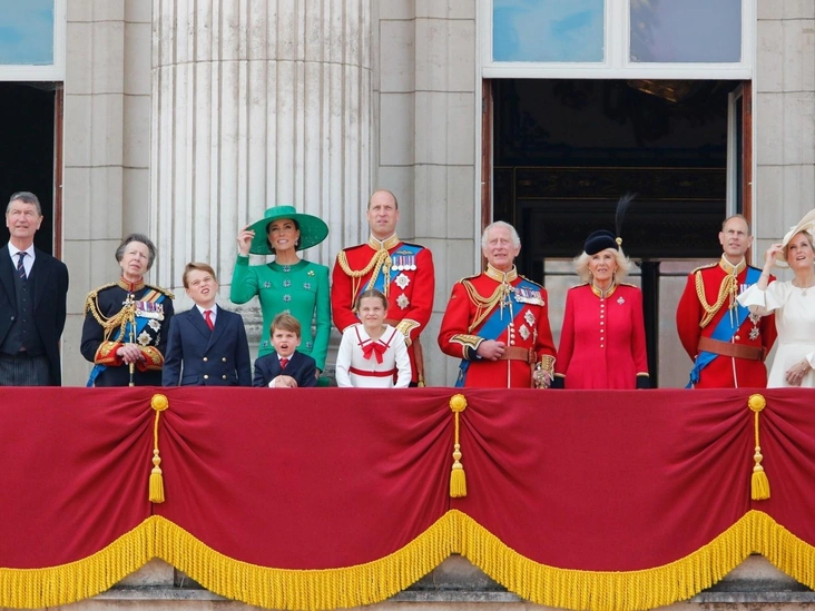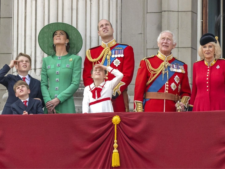 После парада король Карл и королева Камилла, герцоги Эдинбургские Софи и Эдуард, принцесса Анна и Тимоти Лоренс, а также Кэтрин и Уильям Уэльские с детьми традиционно переместились на балкон Букингемского дворца. Парад завершился пролетом около 70 военных самолетов и вертолетов Королевской армии и военно-воздушных сил.