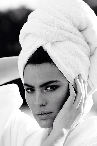 Идея чистой красоты с полотенцами не нова: существует известный снимок 1992 года английского фотографа Херба Ритца (Herb Ritts), на котором Элизабет Тейлор (Elizabeth Taylor) рекламирует аромат White Diamonds в банном халате и полотенце. При этом на ее глазах нанесен яркий макияж, а шея украшена драгоценностями.