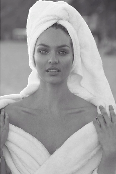 Таким образом он пытается поймать чистую красоту девушек, которая видна благодаря черно-белым контрастным снимкам. В его объективе – Кэндис Свейнепол (Candice Swanepoel), записывающая песню Миранда Керр (Miranda Kerr), Майли Сайрус (Miley Cyrus), Кэмерон Расселл (Cameron Russell), Хейли Клаусон (Hailey Clauson), Эмили Дидонато (Emily Didonato), Эдита Вилкевичуте (Edita Vilkeviciute), Кэтрин Аптон (Katherine Upton) и 40-летняя Кейт Мосс (Kate Moss). В серии присутствуют и мужчины-модели, только полотенца у них находятся не на голове, а прикрывают тело вместо одежды. На этих снимках Дэвид Ганди (David Gandy) и Орельен Мюллер (Aurelien Muller ).