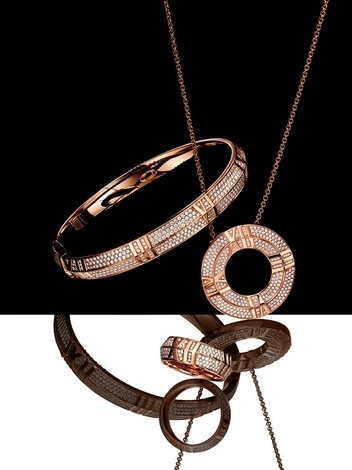 Во всех трех мотивах присутствуют украшения с бриллиантовыми акцентами, наполняющими объекты интенсивным сиянием — так, например, широкий браслет и кольцо Atlas X украшены бриллиантовым паве в виде сот для максимального сияния камней.