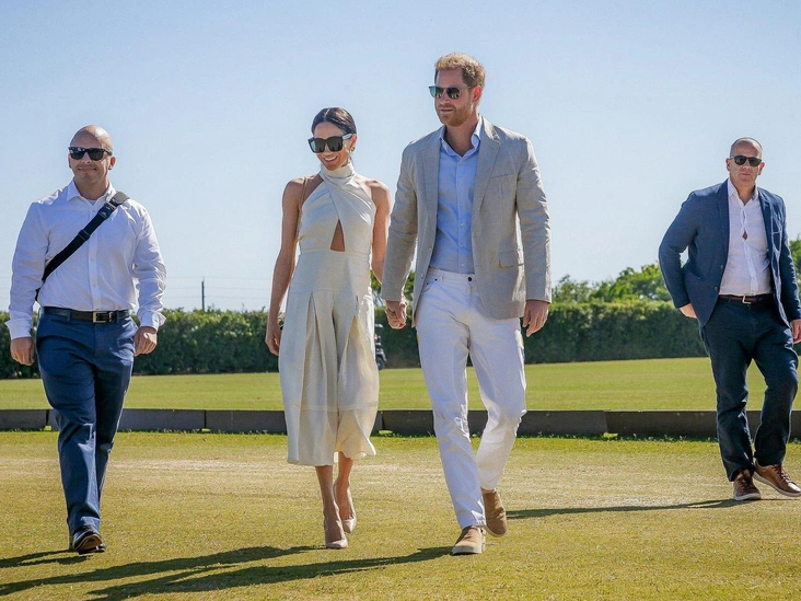Но для съемок фильма принца Гарри про поло стилист подобрала герцогине новый наряд, который вызвал не меньший восторг. Сумка Valentino One Stud, бежевые лодочки на высоком каблуке, белый комбинезон с высоким горлом, золотые серьги и кольцо с крупным бриллиантом от Lorraine Schwartz. Впереди у Меган еще съемки собственного фильма и, очевидно, презентация нового бренда — так что Мизрахи будет где показать мастерство.