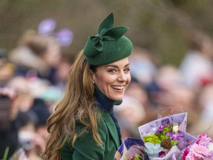 На торжественной части мероприятия Кейт и Уильям появились вместе с Карлом III и Камиллой. Принцесса вышла в безупречном изумрудно зеленом образе: строгом пальто Alexander McQueen, которое дополнила шляпкой с бантом Gina Foster, черной сумкой Grace Han, бархатными остроносыми сапогами на высоком каблуке и шарфом в сине-зеленую клетку.